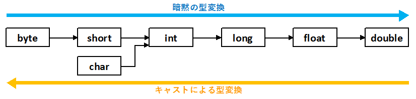 上図のような形でデータ型の型変換が可能です。